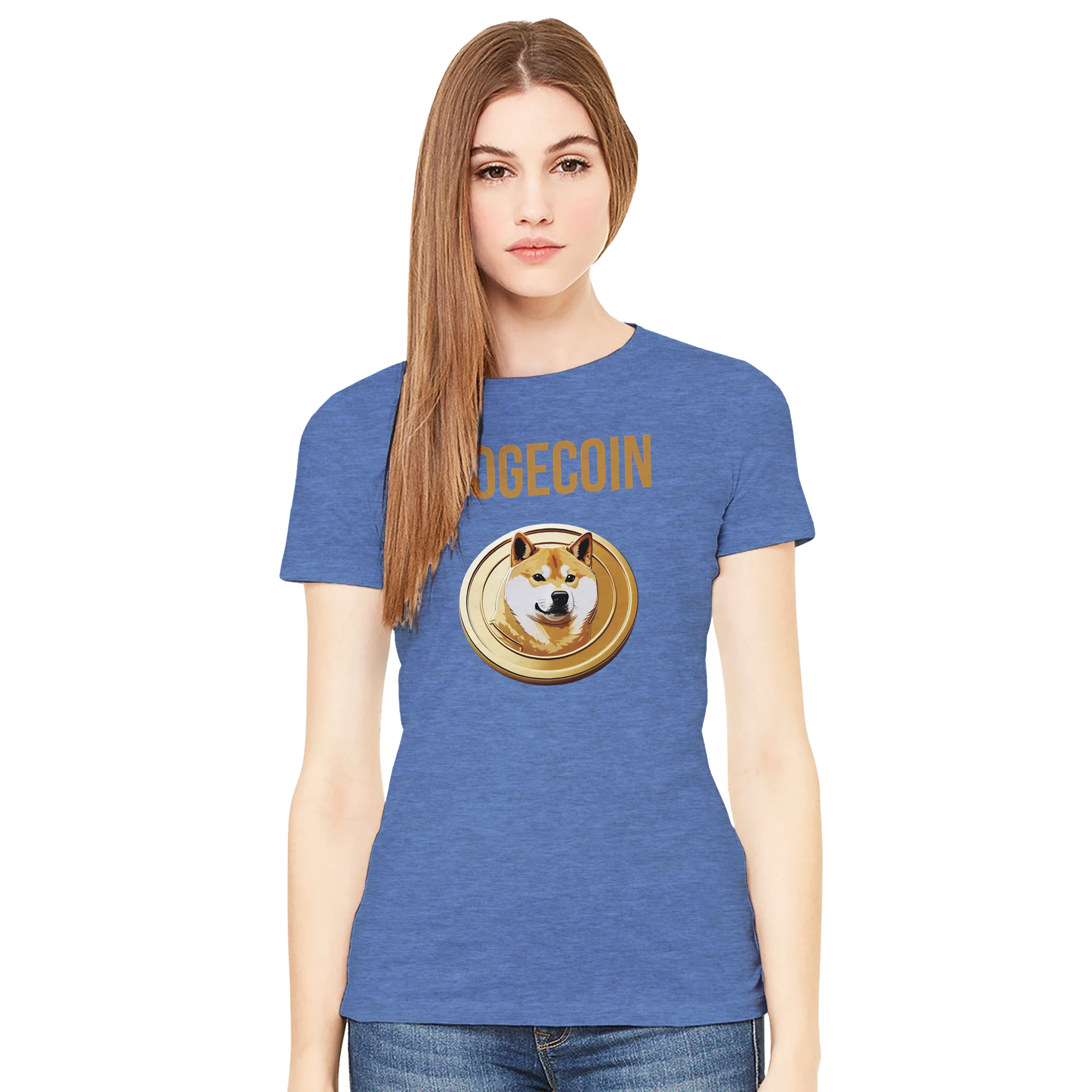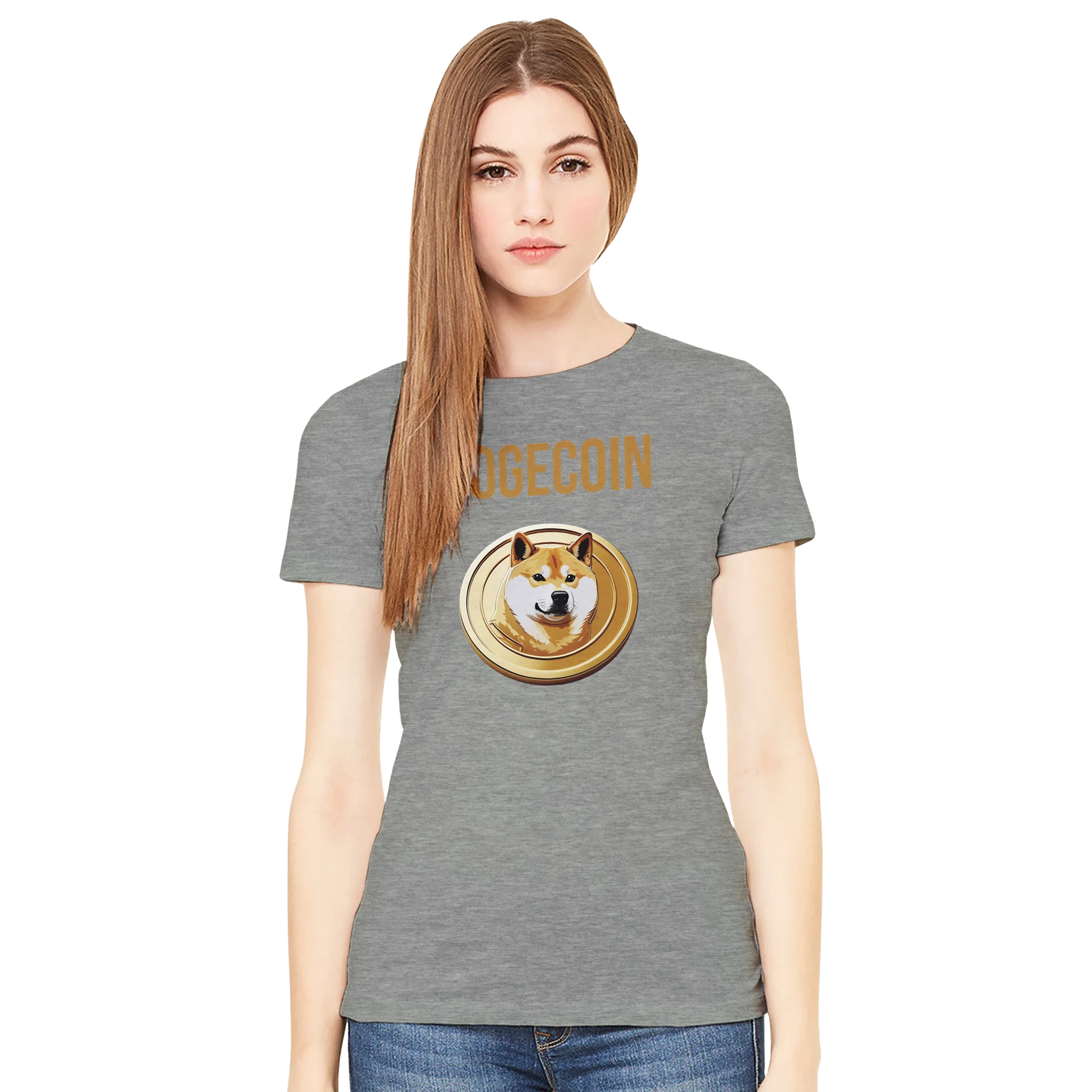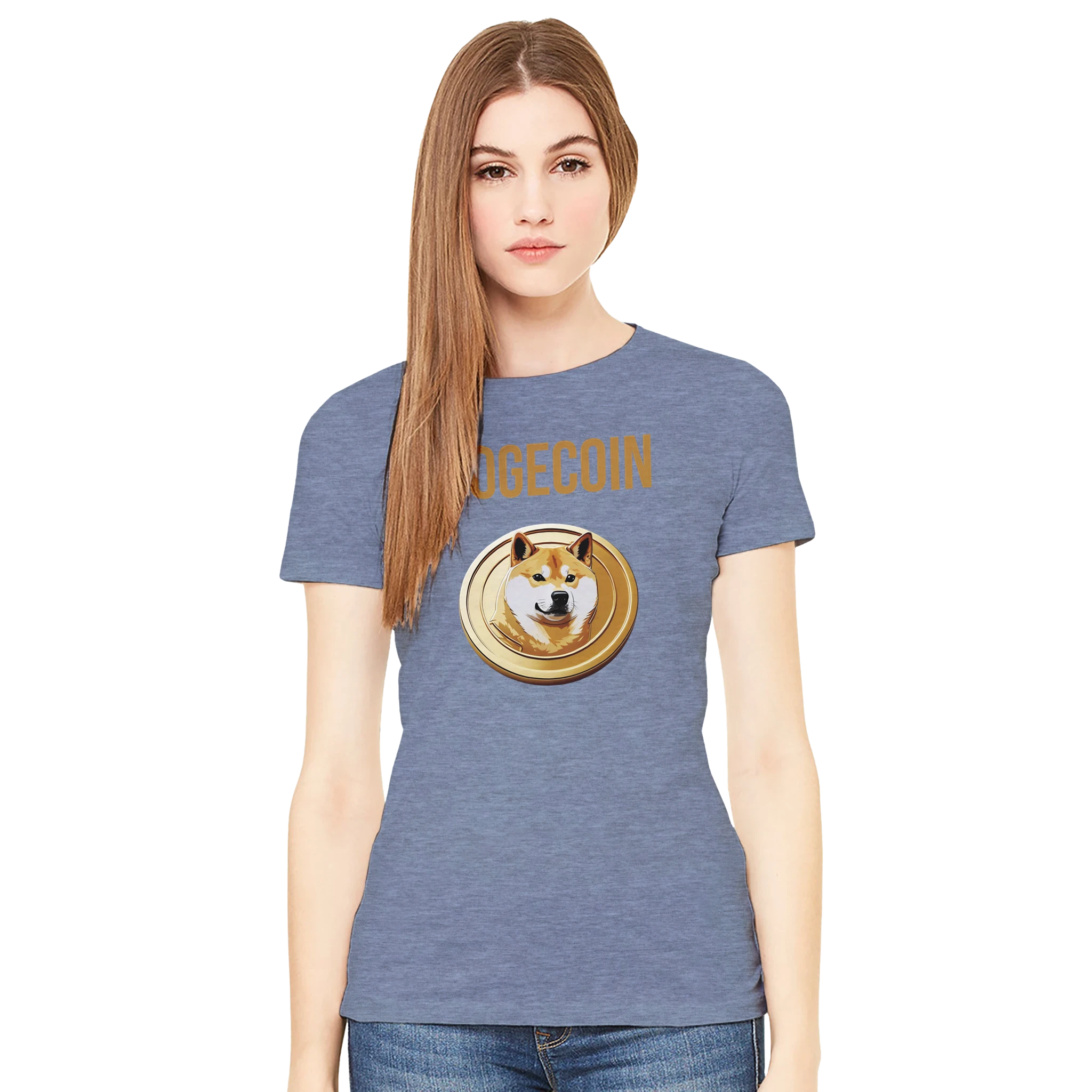 Wear your love for the “people’s crypto” with the Dogecoin Spellout Logo Premium Women’s Crewneck T-Shirt. More than just apparel, it’s a symbol of Dogecoin’s mission to make finance fun and accessible. Order now and elevate your crypto wardrobe with this stylish Bella + Canvas 6004 tee!