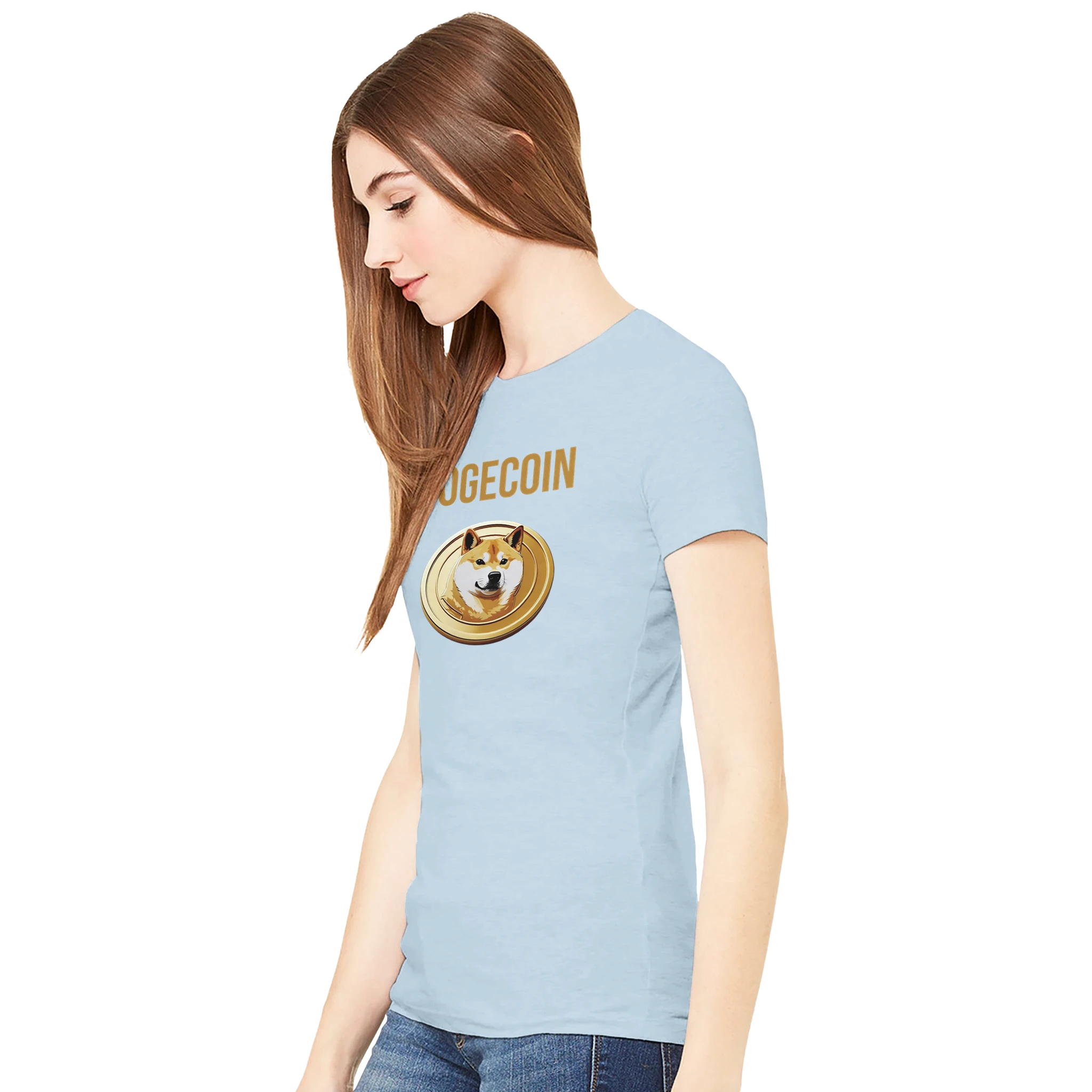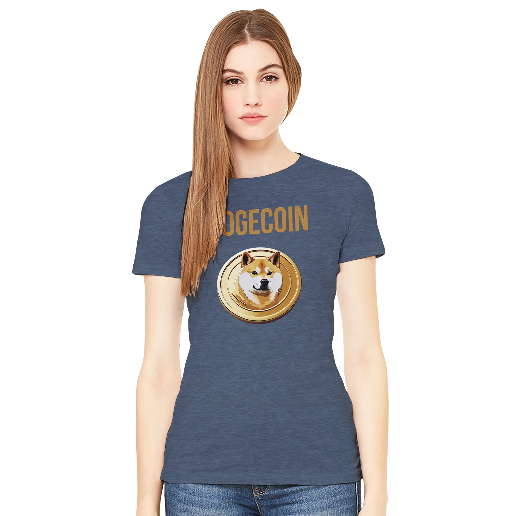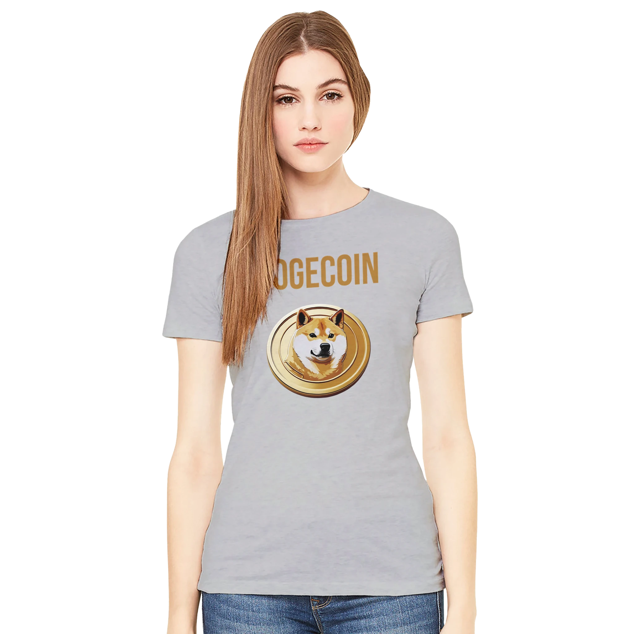 Wear your love for the “people’s crypto” with the Dogecoin Spellout Logo Premium Women’s Crewneck T-Shirt. More than just apparel, it’s a symbol of Dogecoin’s mission to make finance fun and accessible. Order now and elevate your crypto wardrobe with this stylish Bella + Canvas 6004 tee!
